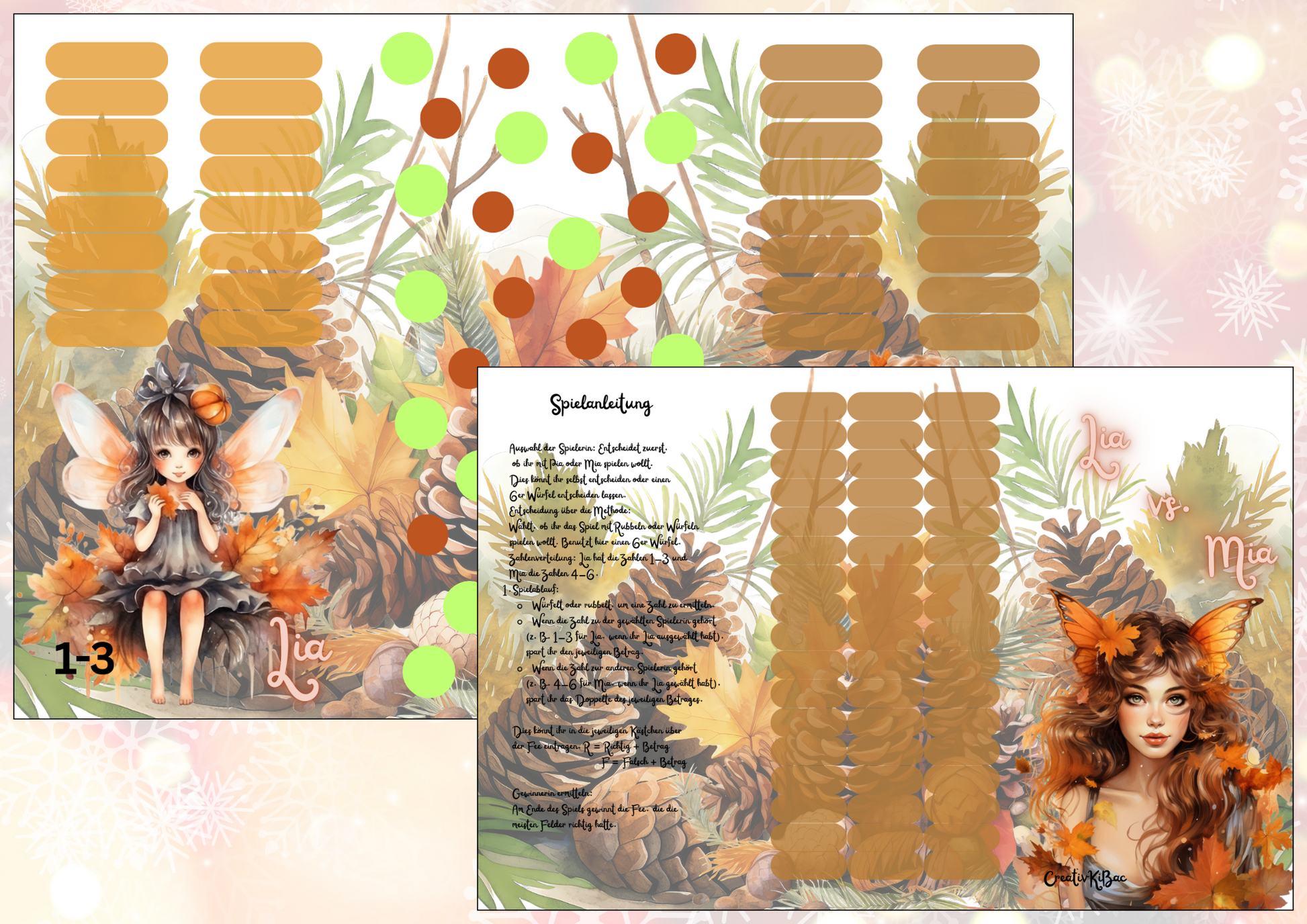 Mit der A6 3er Klappkarte Lia vs. Mia treten die beiden Freunde spielerisch gegeneinander an. Durch Würfeln entscheidest du, wer am Zug ist – entweder darf ein Feld freigerubbelt oder ein Feld durch Würfeln ausgefüllt werden. Wer am Ende mehr gespart hat, gewinnt das lustige Sparduell!