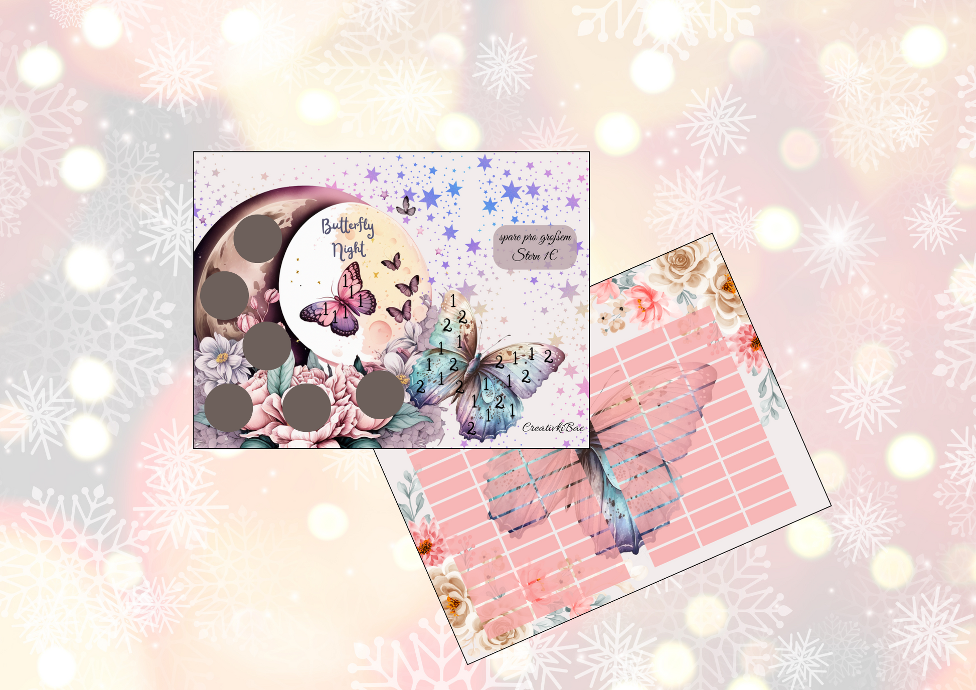 Flattere in die Nacht mit unserer "Butterfly Night" Einheftchallange! Diese verspielte gelochte Karte mit Schmetterlingen und Mond lässt dich Beträge freirubbeln und Zahlen in den Flügeln abstreichen. Sammle funkelnde Sterne zum Sparen! In zwei praktischen Größen erhältlich: A6 für mehr Platz oder A7 für unterwegs. Welche Größe passt zu deinem Schmetterlingsabenteuer?