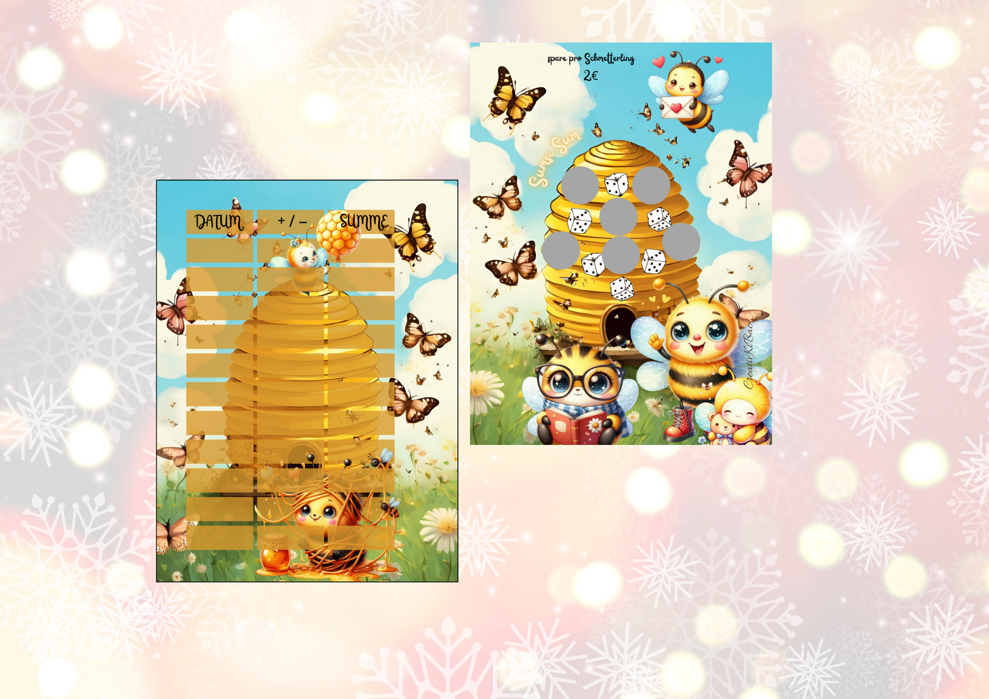 Flattere in deine Sparziele mit "Sumsi Sum" - der fröhlichen Einheftchallenge mit Schmetterlingsflair! In zwei Größen (A6 und A7) erhältlich und bereits gelocht zum einfachen Einheften. Rubbel die Beträge frei, streiche mit dem Würfel ab und spare pro Schmetterling einen Betrag. Eine spielerische Art, deine Sparziele zu erreichen und dabei Spaß zu haben!