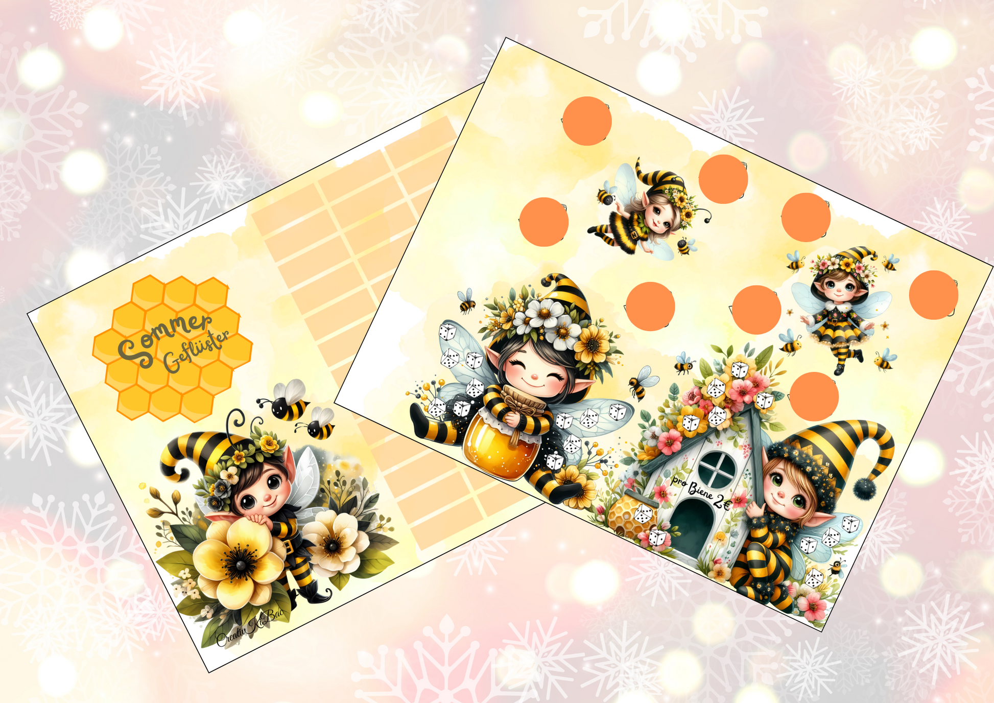 Entdecke "Sommergeflüster" - unsere verspielte Bienengnome-Rubbelkarte für sonnige Tage! In zwei praktischen Größen (A6 und A7) als gelochte Klappkarte erhältlich. Streiche die Bienen ab,rubbel die Felder frei, streiche Ersparnisse ab oder würfle dich durch sommerliche Challenges. Der perfekte Begleiter für spontane Sommerabenteuer und fröhliche Momente im Freien!