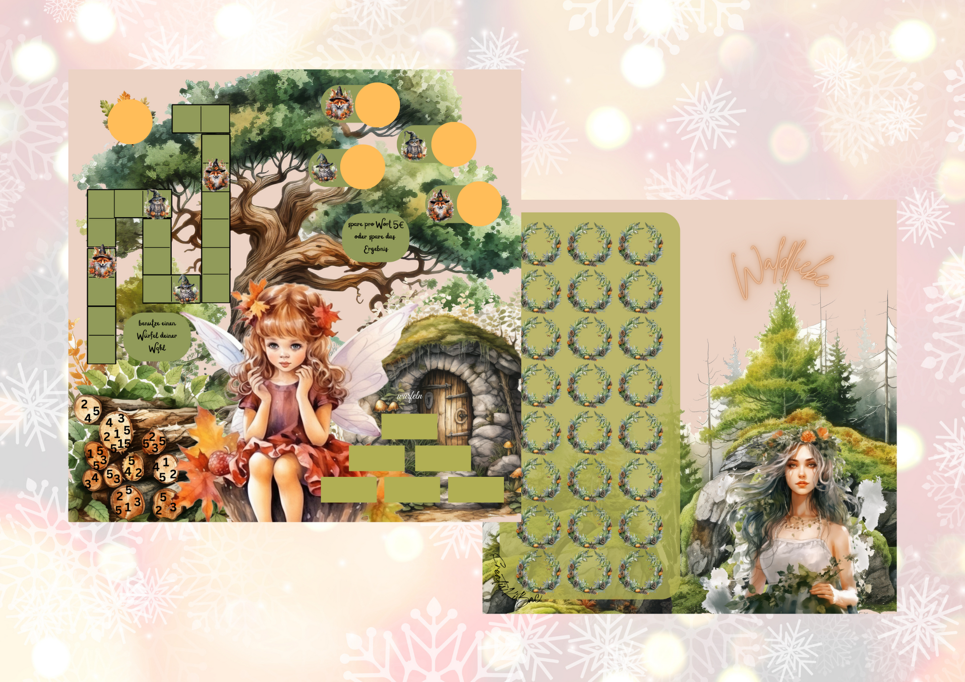 Eine kleine Würfelpyramide wartet auf Euch, Beträge zum abtreichen und ein kleiner Weg mit Aktionsfeldern.