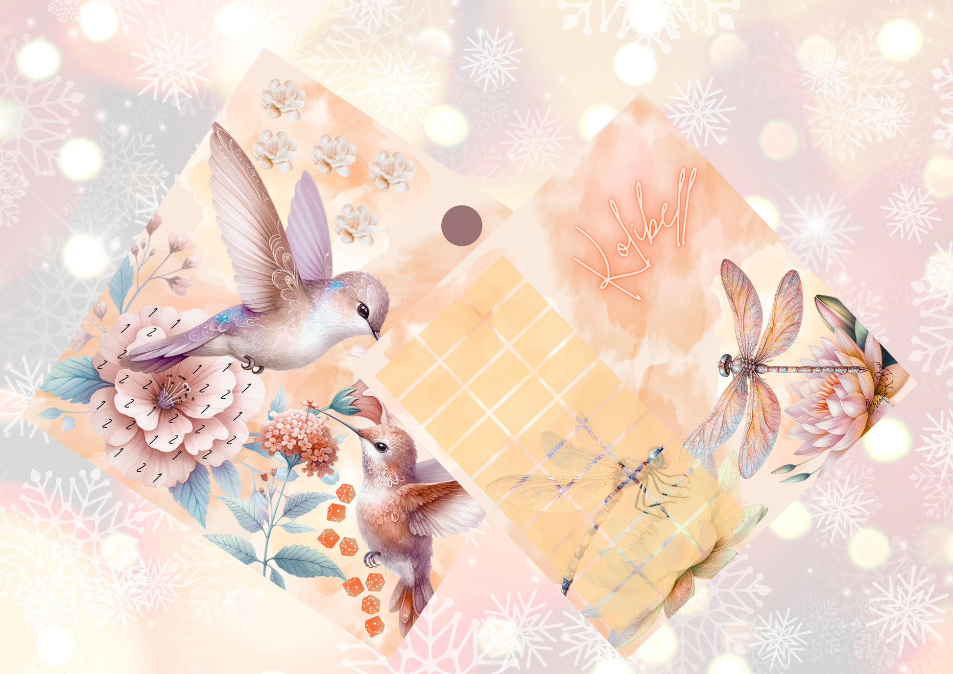 Kolibell ist eine bezaubernde 2er Klappkarte im A6-Format, die mit Libellen und Kolibris verzaubert. Hier könnt ihr rubbeln, abstreichen, würfeln und wer mag, auch Lose ziehen – ganz nach eurem Geschmack. So wird das Spielen bunt und abwechslungsreich, perfekt für fröhliche Momente!
