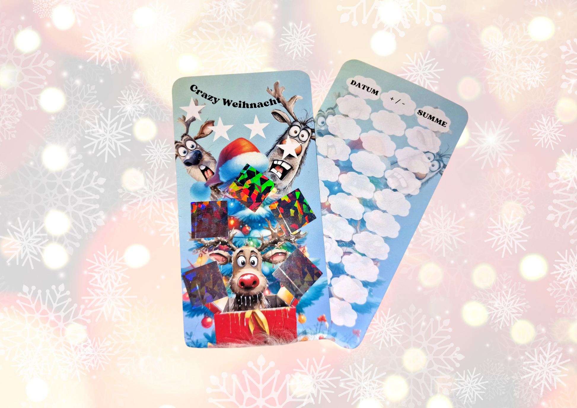 Bei Crazy Weihnacht könnt ihr rubbeln oder Lose ziehen. Der Tracker befindet sich auf der Rückseite.