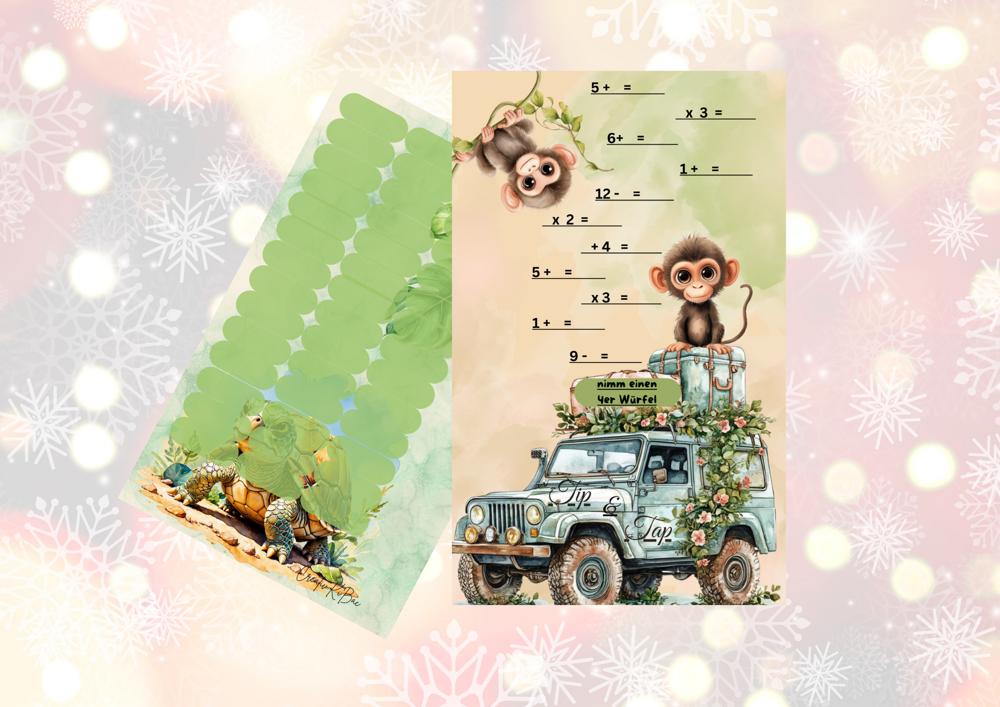 Tip & Tap : würfel mit einem 4er Würfel ,trage die Zahl ein ,rechne zusammen und spare das Ergebnis