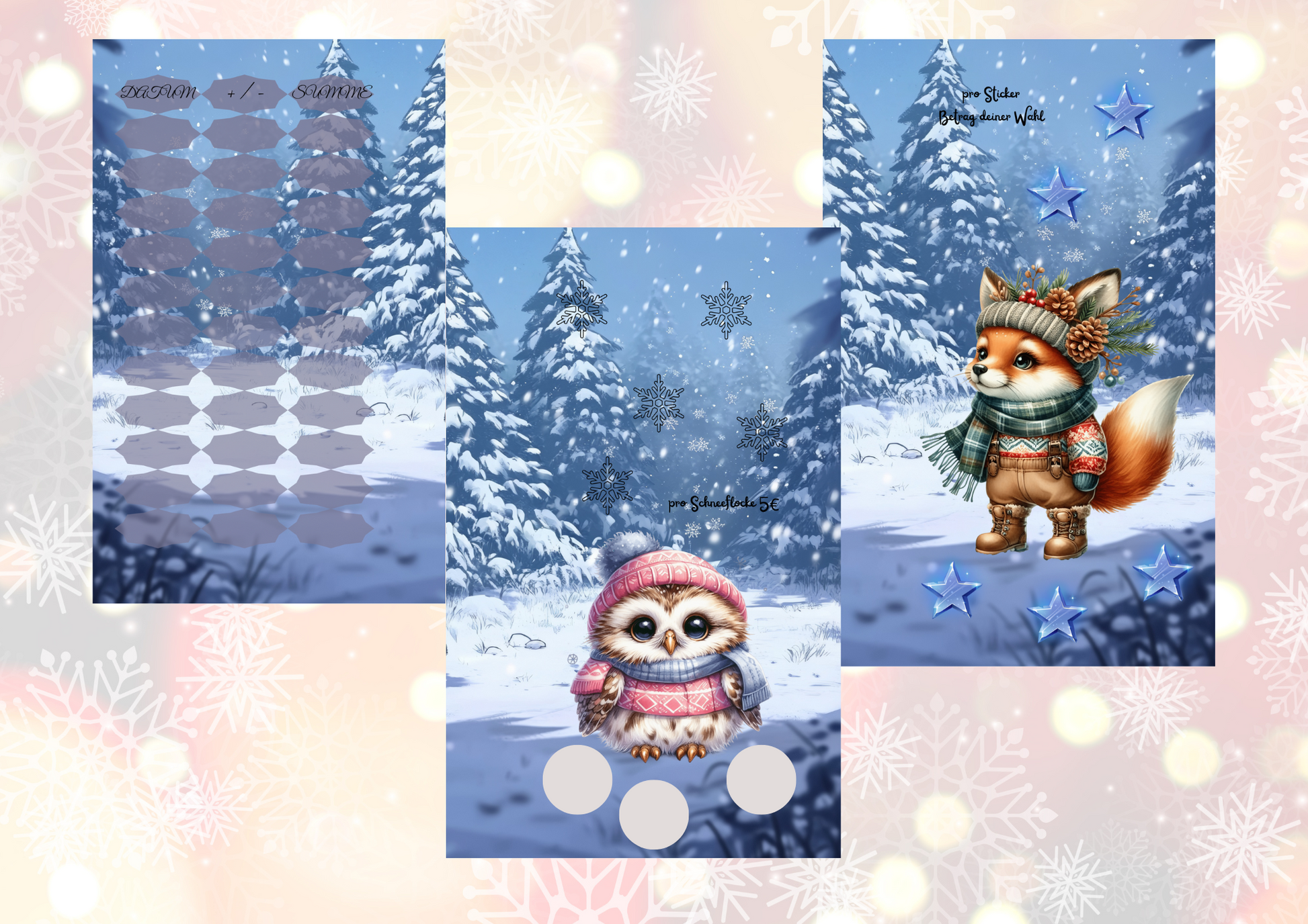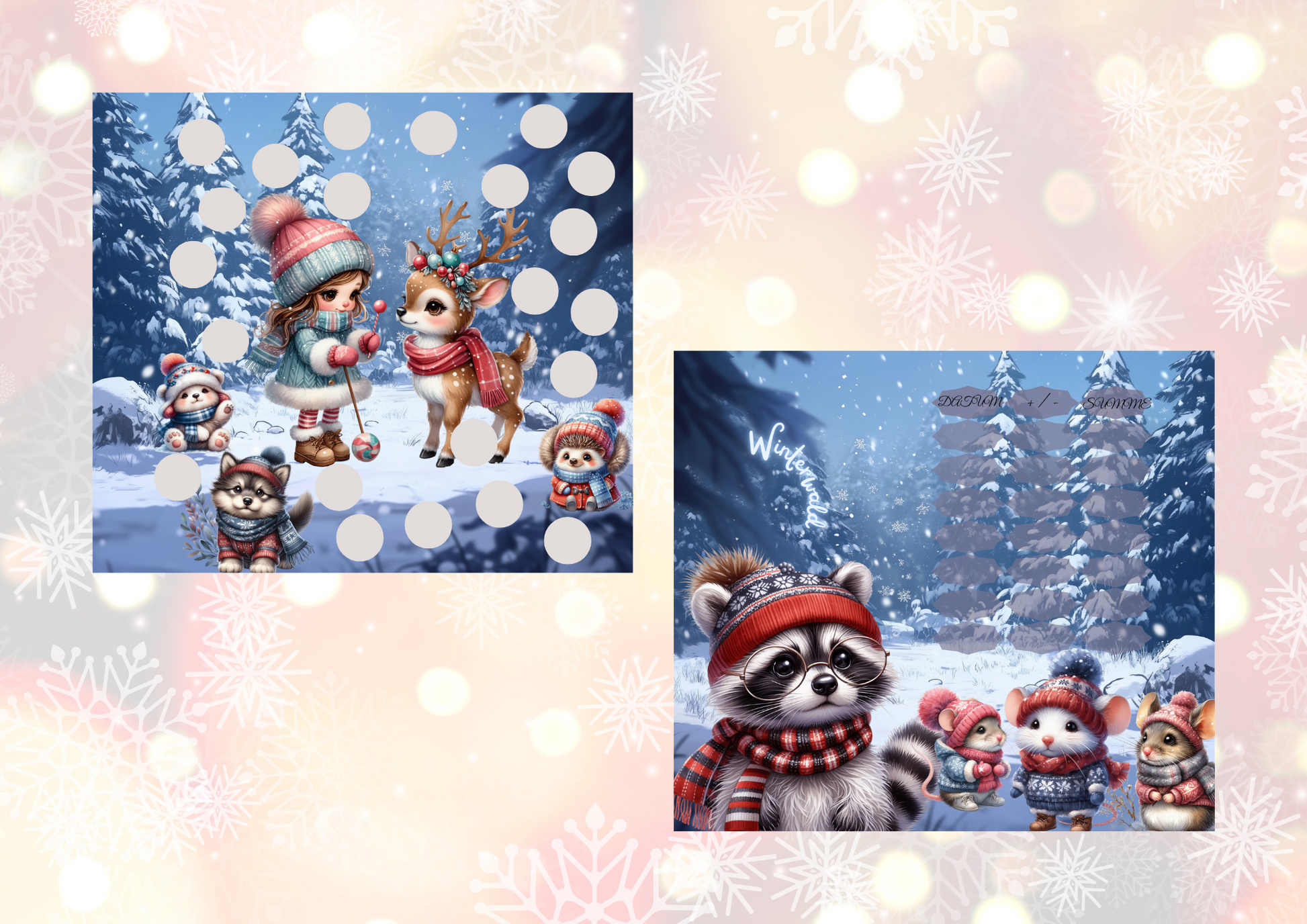 Ihr mögt gerne rubbeln, dann ist die Winterwald genau da richtige. Unter den Rubbelfeldern befinden sich Beträge, Lose ziehen und würfeln aber es gibt auch noch 2 Tierchen die sich verstecken. Wenn ihr eins findet dann spielt ihr auf der passenden Karte.