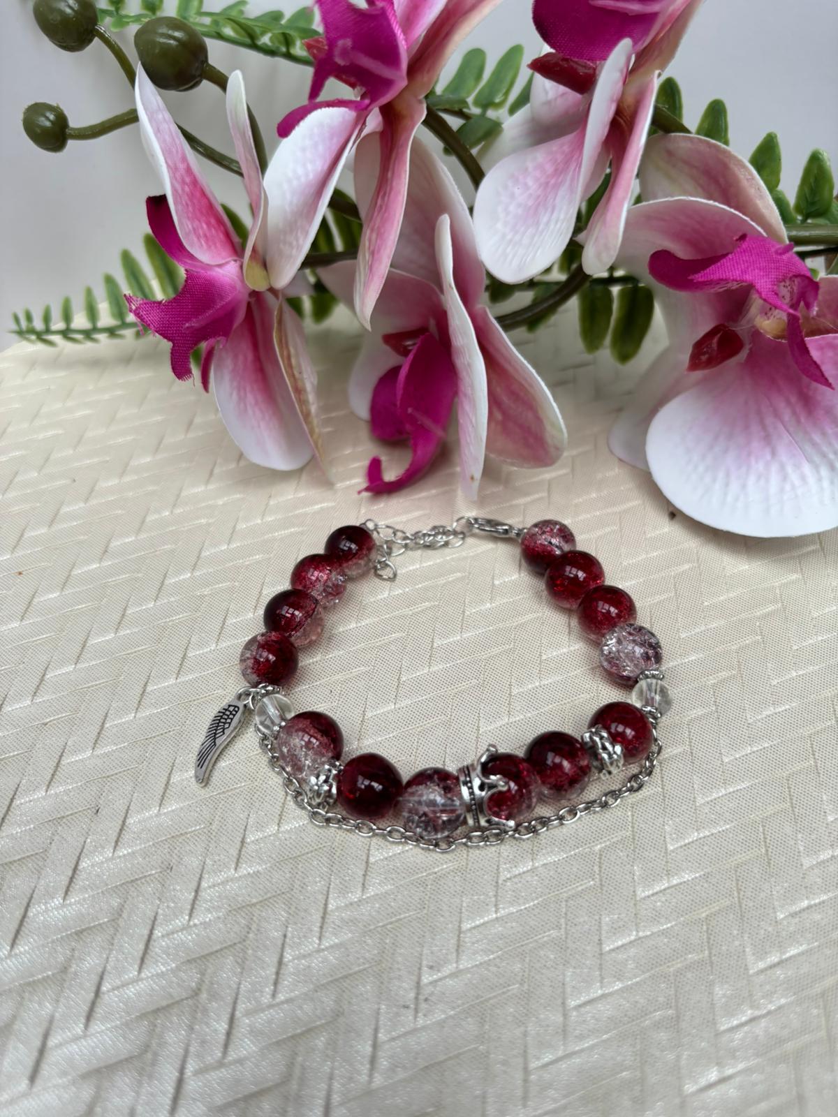 Dieses verspielte rot-weiße Armband verleiht jedem Outfit einen Hauch von Farbe! Die funkelnden Glasperlen schmücken dein Handgelenk bei festlichen Anlässen genauso wie im Alltag. Ein schickes Modeschmuck-Accessoire, das Blicke auf sich zieht und deine Persönlichkeit unterstreicht.