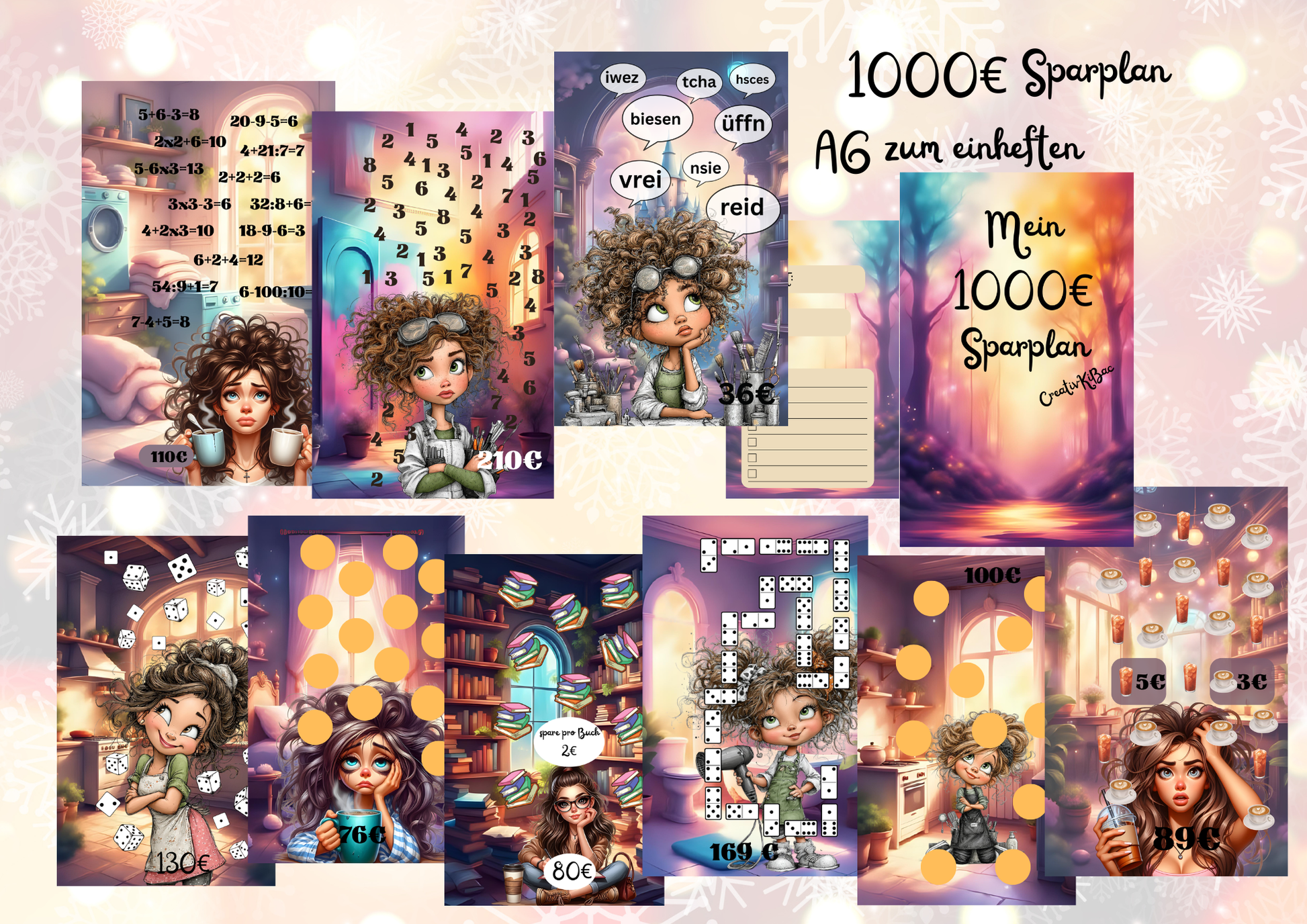 9 Challenges zum bespielen mit einem gesamt Sparbetrag von 1000€ am Ende
