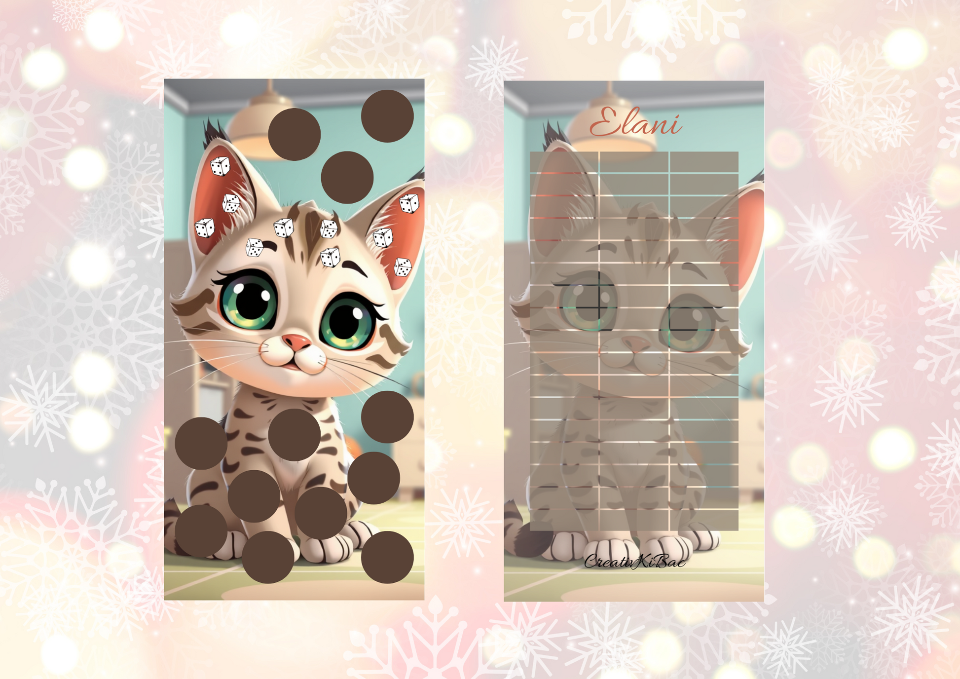 Triff Elani, die niedliche Babykatze, die dein Sparabenteuer begleitet! Diese verspielte A6-Binder-Einlage lässt dich durch Rubbeln und Würfelabstreichen deine Sparziele verfolgen. Mit Elanis süßem Schnurren wird Sparen zum vergnüglichen Spiel! Perfekt einzuheften und immer dabei – dein flauschiger Motivationsboost für finanzielle Erfolge.