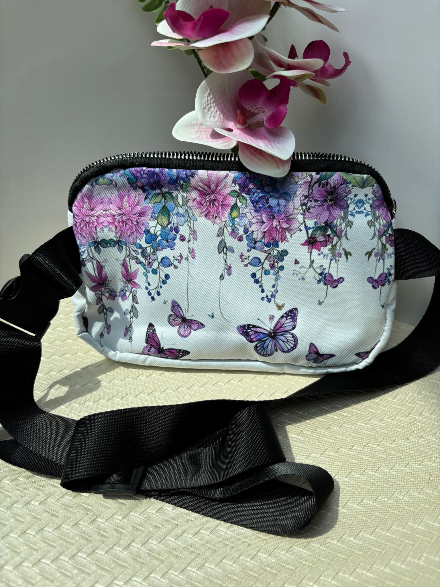 Bauchtasche/ Umhängetasche Blumen mit Schmetterlingen