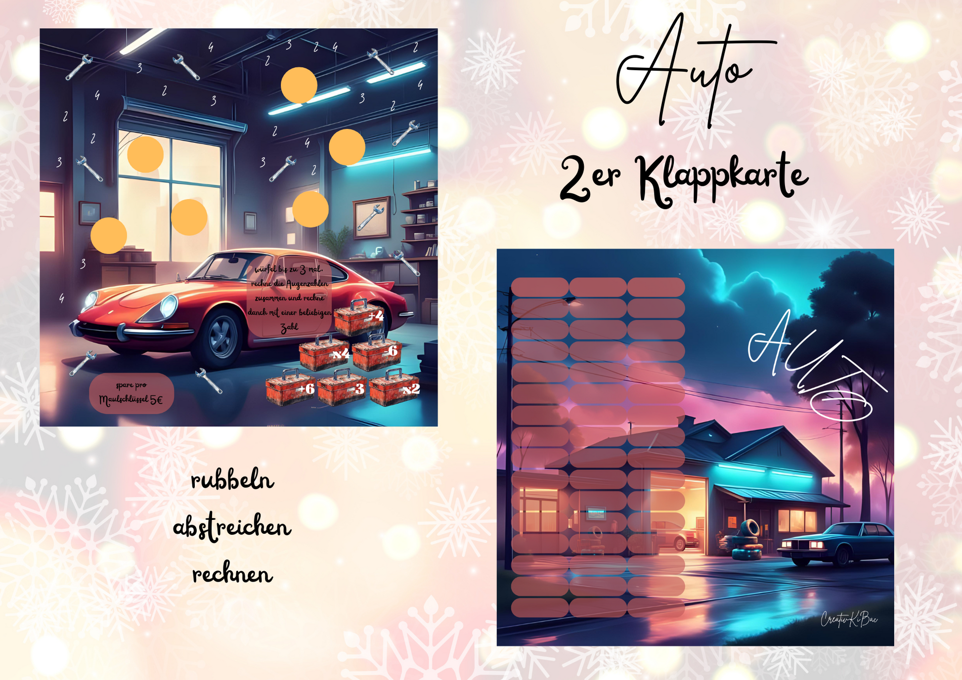 Auto, oh Auto – Reparaturen können ganz schön ins Geld gehen! Mit dieser praktische A6 2er Klappkarte könnt ihr spielerisch etwas Geld für den Ernstfall zurücklegen, ohne dass die Haushaltskasse dabei leidet. So bleibt ihr entspannt, wenn mal was kaputtgeht!