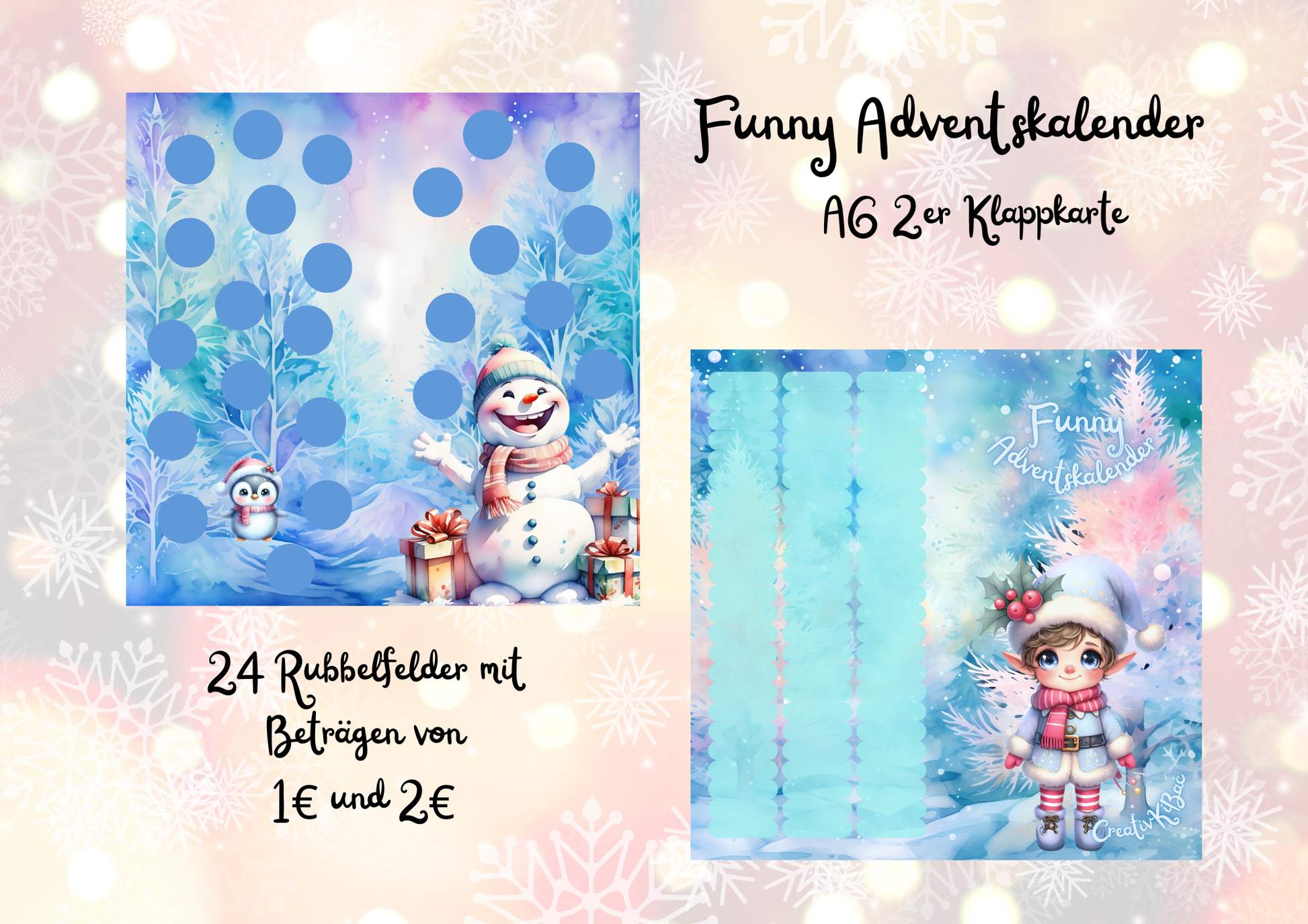 2er Klappkarte mit 24 Rubbelfeldern unter denen sich Beträge von 1€ und 2€ verbergen
