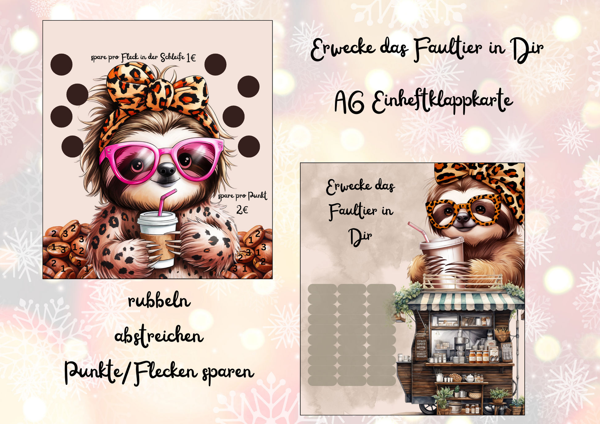 Mit der „Erwecke das Faultier in Dir“ Einheftchallenge kannst du spielerisch für deinen nächsten Café-Besuch sparen. Rubbel, streiche ab und sammle Punkte oder Schleifen – so wird das Sparen ganz entspannt und macht richtig Spaß. Perfekt, um gemütlich etwas zurückzulegen und dabei deine faulen Seiten zu feiern!