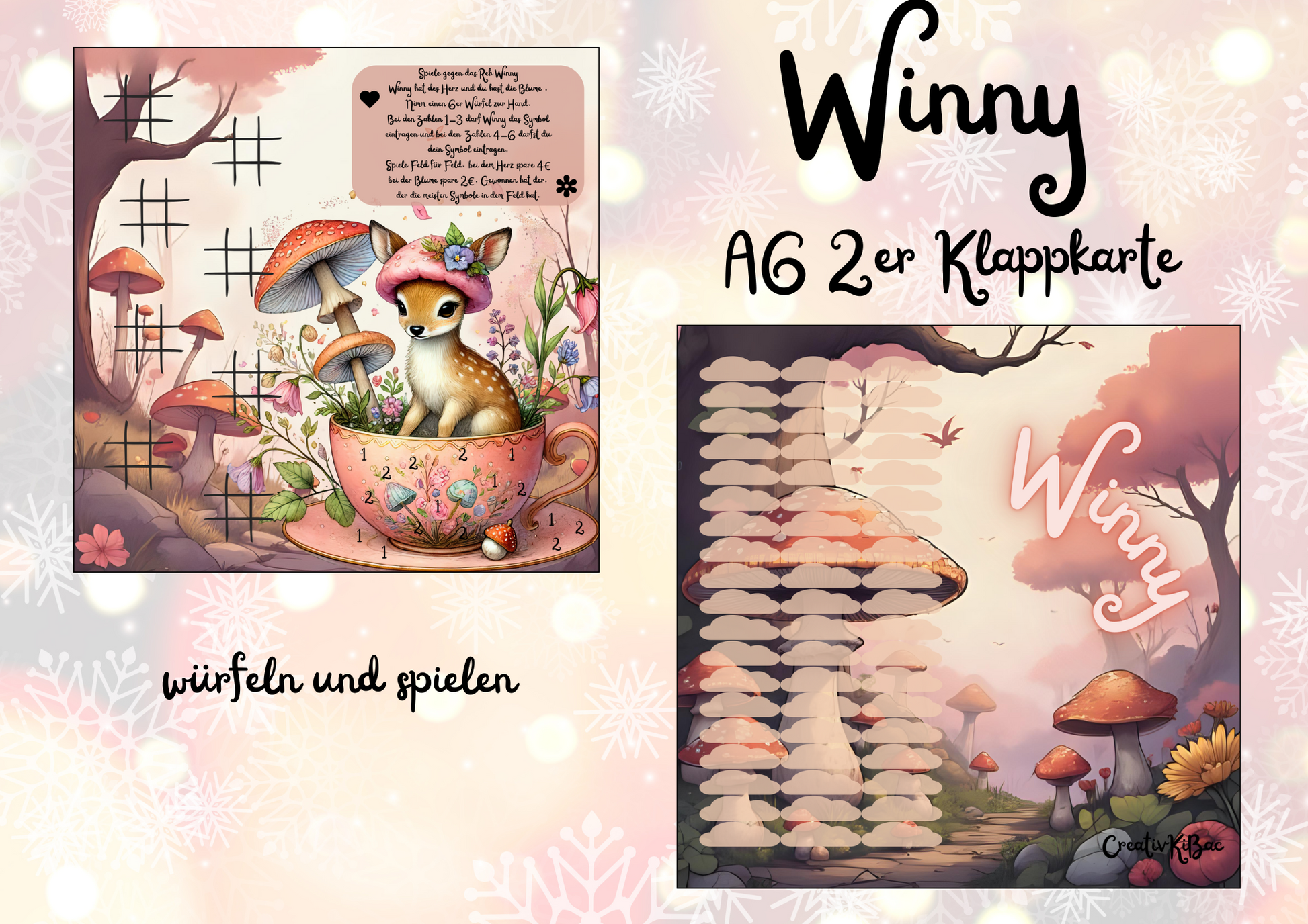 Tritt gegen das freche Reh Winny an und lass das Würfeln entscheiden, wer als Nächstes sein Zeichen setzen darf! Diese praktische A6 2er Klappkarte passt perfekt in deine A6-Hüllen und sorgt für jede Menge Spielspaß unterwegs. Ideal für kleine Wettkämpfe zwischendurch – wer gewinnt das Match?